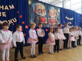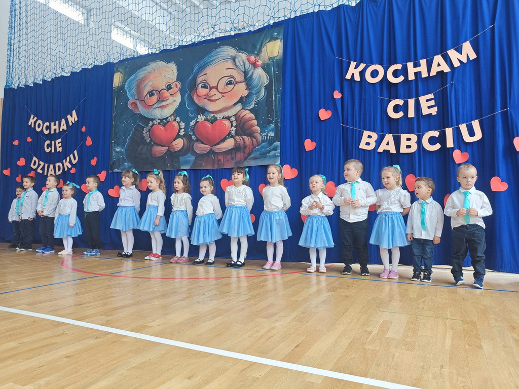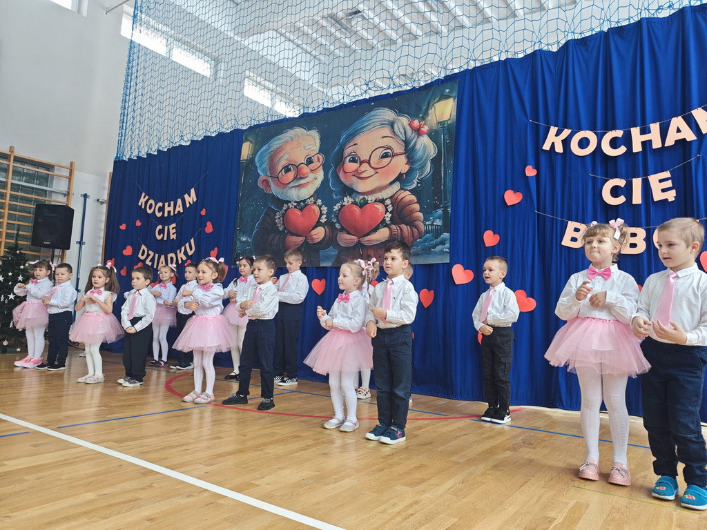 W dniu 23 stycznia 2026 roku odbyła się piękna uroczystość łącząca pokolenia. Przedszkolaki swoim dziecięcym wdziękiem recytowały ukochanym Babciom i Dziadkom urocze wierszyki i życzenia. Przedstawione gościnnie przez starsze koleżanki i starszych kolegów "Jasełka" oraz zaprezentowane przez dzieci przedszkolne układy taneczne do okolicznościowych piosenek wzbogaciły tak ważne dla całej społeczności wydarzenie. Panowała atmosfera radości i wielkiego przejęcia, zarówno wśród młodych artystów, jak i zaproszonych Gości. Nie brakowało serdeczności, uścisków i uśmiechów podczas wręczania przez przedszkolaków pamiątkowych upominków. Na zakończenie części artystycznej Pan Dyrektor podziękował Gościom, za tak liczne przybycie oraz pogratulował dzieciom, wychowawczyniom i osobom przygotowującym całe wydarzenie. Po przedstawieniu Babcie i Dziadkowie wspólnie biesiadowali przy poczęstunku przygotowanym przez Rodziców ~ za co uprzejmie Dziękujemy.