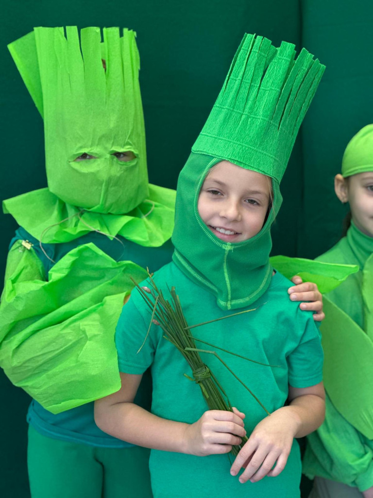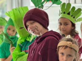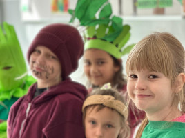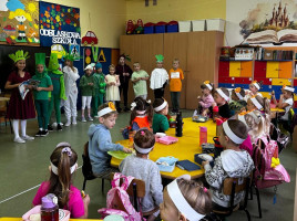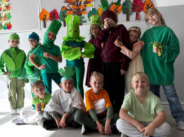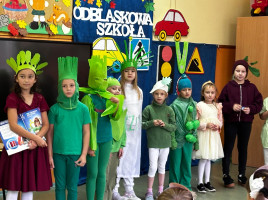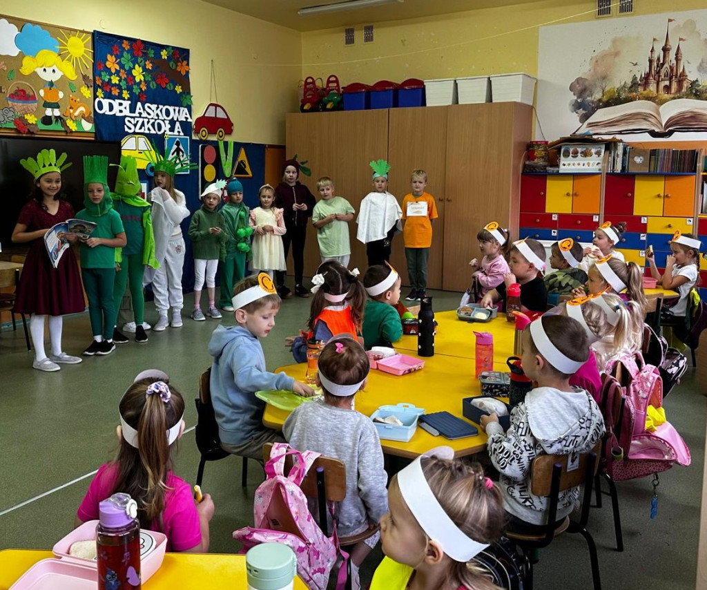 Dziewczynki i chłopcy wcielili się w odpowiednio dobrane role. Krzykliwy szczypiorek dowodził wraz z selerem i pietruszką. Czerwony burak dumnie gardził uczuciami wyciskającej łzy - cebuli, a groch z rzepą w dobrej komitywie szczęśliwie dotarli do finału opowieści. Cóż z tego, przecież według zamysłu autora: Jana Brzechwy, wszystkie warzywa giną w zupie. Najwięcej do powiedzenia ma jednak kapusta - głowa pusta, wyniosła i przemądrzała, która na życiowym straganie, wcielając się w rolę smutnego warzywa, za swój morał nagradzana zostaje brawami! Występom towarzyszył radosny nastrój. Cieszyli się zarówno aktorzy, jak również widzowie - przedszkolaki, których kreatywni drugoklasiści odwiedzili z teatrzykiem. Piękne stroje dodały uroku występom, a one z pewnością pozostaną długo w pamięci nie tylko małych artystów.