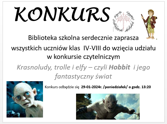 Przypominamy również, że biblioteka szkolna w dniach 18, 21, 22 grudnia czynna jest do godziny 14.00,