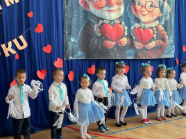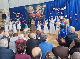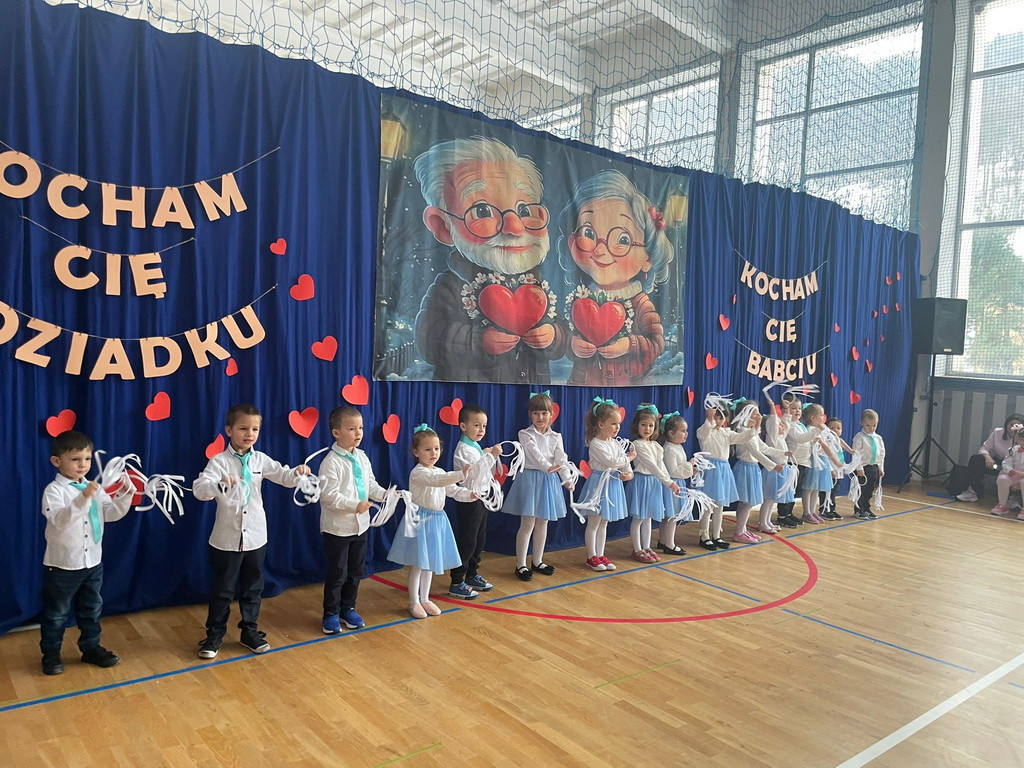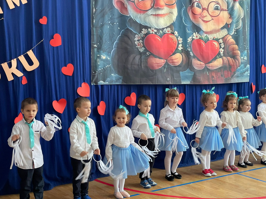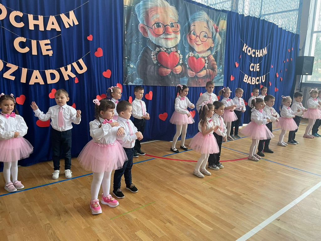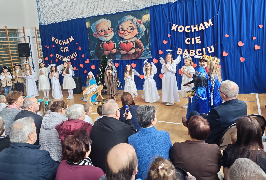 W dniu 23 stycznia 2026 roku odbyła się piękna uroczystość łącząca pokolenia. Przedszkolaki swoim dziecięcym wdziękiem recytowały ukochanym Babciom i Dziadkom urocze wierszyki i życzenia. Przedstawione gościnnie przez starsze koleżanki i starszych kolegów "Jasełka" oraz zaprezentowane przez dzieci przedszkolne układy taneczne do okolicznościowych piosenek wzbogaciły tak ważne dla całej społeczności wydarzenie. Panowała atmosfera radości i wielkiego przejęcia, zarówno wśród młodych artystów, jak i zaproszonych Gości. Nie brakowało serdeczności, uścisków i uśmiechów podczas wręczania przez przedszkolaków pamiątkowych upominków. Na zakończenie części artystycznej Pan Dyrektor podziękował Gościom, za tak liczne przybycie oraz pogratulował dzieciom, wychowawczyniom i osobom przygotowującym całe wydarzenie. Po przedstawieniu Babcie i Dziadkowie wspólnie biesiadowali przy poczęstunku przygotowanym przez Rodziców ~ za co uprzejmie Dziękujemy.