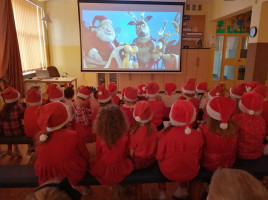 Dodatkowo z okazji Mikołajek odbyło się nowatorskie wydarzenie - zorganizowano kino dla przedszkolaków. To innowacyjne przedsięwzięcie zostało przygotowane z myślą o najmłodszych, aby wprowadzić ich w świat filmu oraz jednocześnie rozwinąć umiejętności społeczne i edukacyjne. Przed rozpoczęciem seansu dzieci poznały podstawowe zasady obowiązujące w kinie – zachowanie ciszy, skupienie na filmie oraz szacunek dla innych. Młodzi widzowie z zachwytem obejrzeli film animowany pt. „Bardziej baśniowe święta” na wielkim ekranie w specjalnie przygotowanej świetlicy oraz delektowali się smaczną przekąską w postaci popcornu i chrupek kukurydzianych.