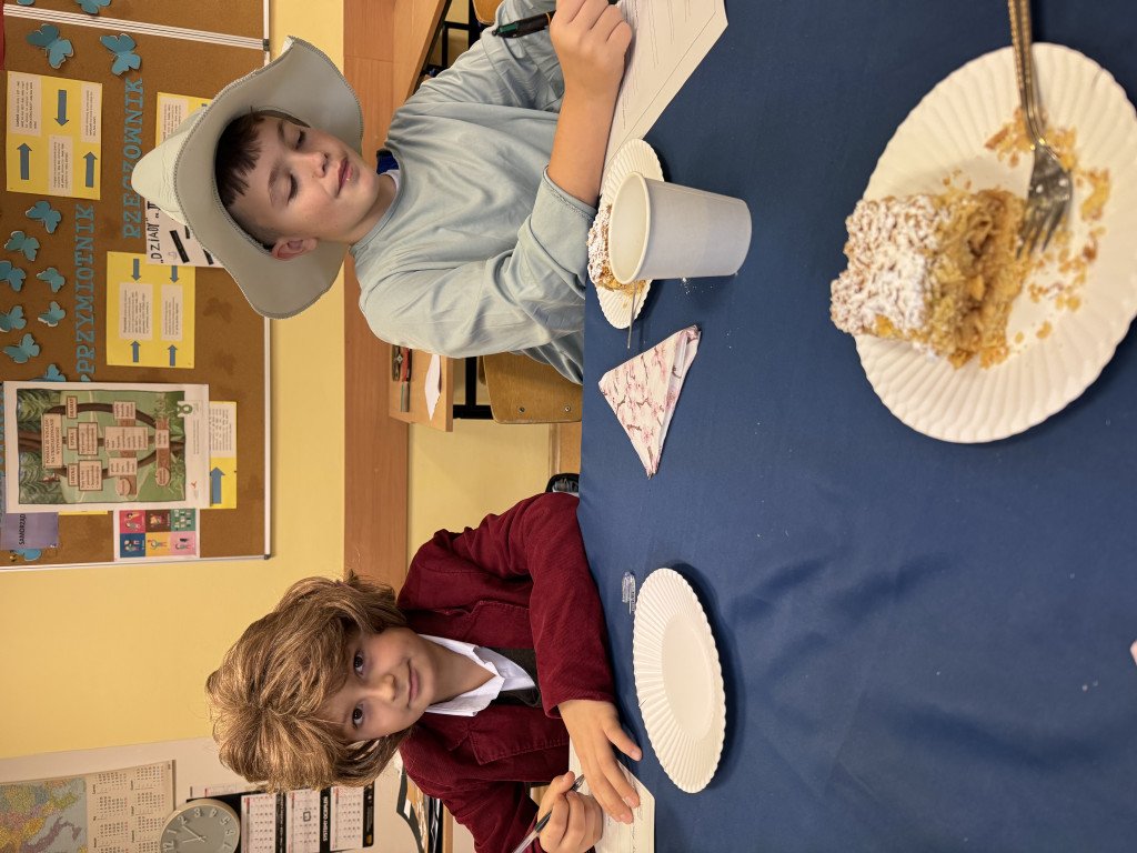 Każdy miał okazję zaprezentować swoją postać, opowiedzieć o jej cechach i roli w lekturze, dzięki czemu uczniowie mogli spojrzeć na książkę z zupełnie nowej perspektywy. Nie zabrakło również poczęstunku – na stole dumnie królowała ulubiona szarlotka Bilba Bagginsa, która wprowadziła wszystkich w prawdziwie hobbicką atmosferę.