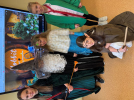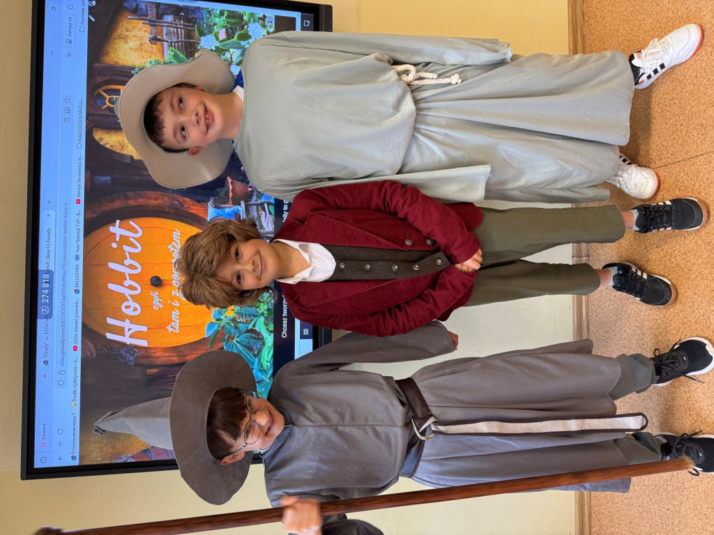 Klasa 6b przeniosła się dziś do świata Śródziemia! Podczas wyjątkowej lekcji języka polskiego uczniowie zorganizowali „Ucztę u Hobbita”, na którą wszyscy przyszli w starannie przygotowanych, niezwykle pomysłowych strojach inspirowanych bohaterami Hobbita.