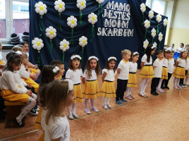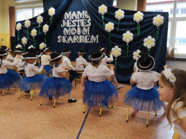 Dzieci z grup "Smerfy", "Słoneczka" i "Sówki" z ogromnym zaangażowaniem zaprezentowały przygotowane występy artystyczne. Były wzruszające wiersze, radosne piosenki i pełne uroku tańce - wszystko po to by, by wyrazić mamom swoją miłość i wdzięczność. Dzieci wręczyły własnoręcznie przygotowane upominki - serca pełne kolorów i dziecięcej miłości.