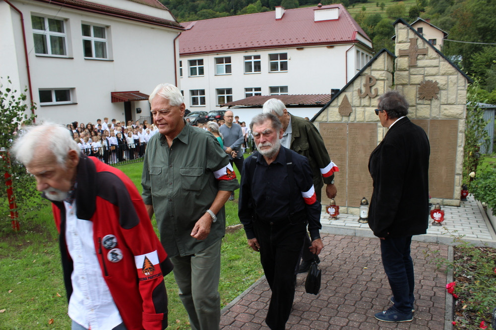 Grupa starszych uczniów powędrowała na Rechmanówkę, miejsce upamiętniające tragiczne losy zamordowanej rodziny Polańskich i partyzantów. Historię tych tragicznych chwil przypomniała w miejscu mordu, wicedyrektor Pani Magdalena Kucaba. Zapalone znicze, biało czerwone kwiaty, modlitwa i zaduma wyraziła szacunek dla Ofiar i wydarzeń tamtych dni. Drogą, obok krzyża na Rechmanówce ku Hali Pisanej, przeszli wędrowcy pod kolejny pomnik, gdzie w zasadzce zginął Adam Kondolewicz ps. „Błysk”. Chwila ciszy przemówiła wspomnieniem…