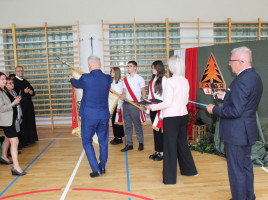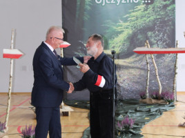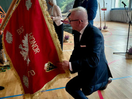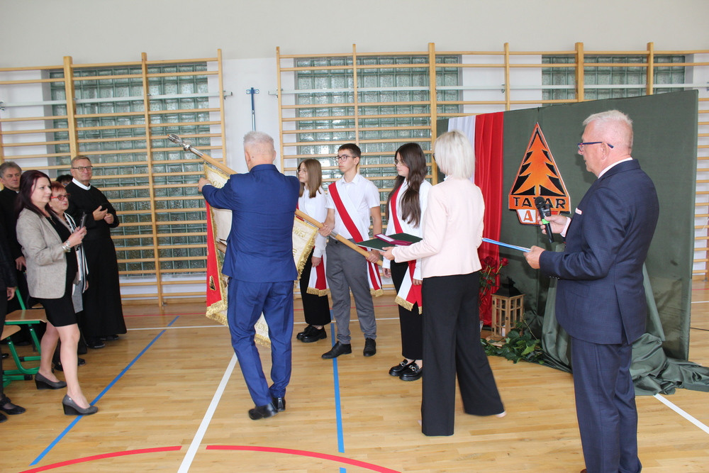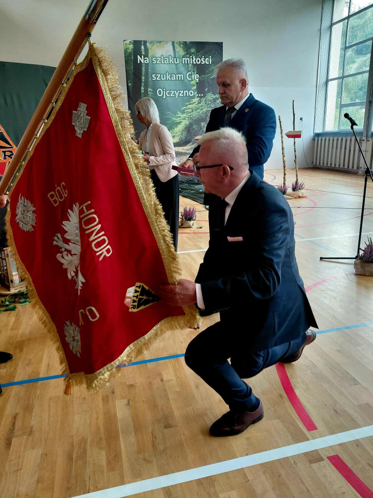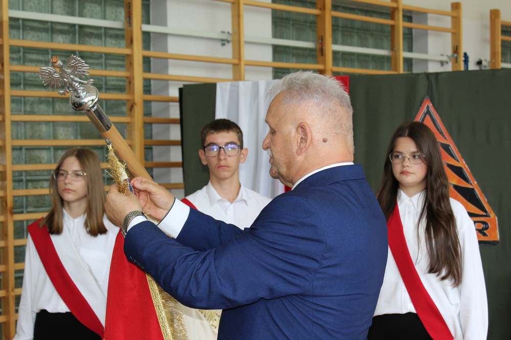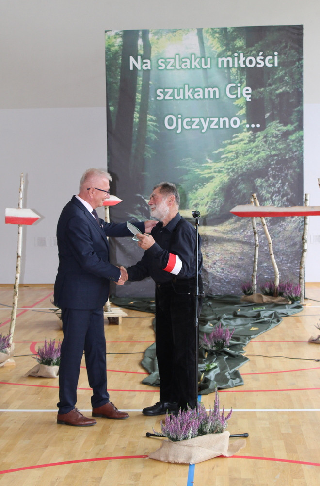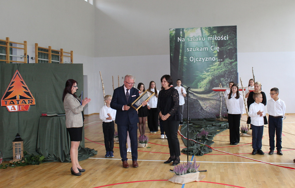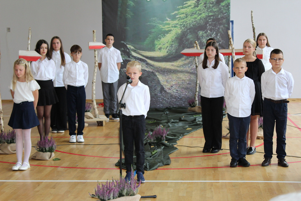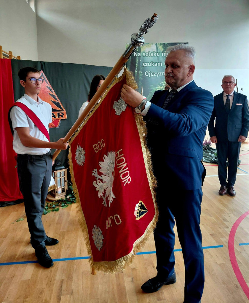 19 września 2025 r. był drugim dniem patriotycznych obchodów, które rozpoczęły się Mszą św. w parafialnym kościele. Przesłanie św. Jana Pawła II o pamięci i tożsamości poruszyło serca zgromadzonych w świątyni wiernych. Mamy świadomość, że ofiara darowanej nam wolności przemawia do naszych serc i sumień szczególnie w takich jak dziś, momentach życia. W dostojeństwie marszowej muzyki zaprezentowanej przez Orkiestrę Dętą OSP w Piwnicznej-Zdroju pod kierownictwem kapelmistrza Sławomira Biela, uczestnicy Święta Patrona przemaszerowali pod pomnik bohaterów tamtych dni, gdzie po uroczystym Apelu Poległych głos zabrał dyr. szkoły Pan Zbigniew Janeczek i przedstawiciele partyzanckich Rodzin. Szacunek dla chwil, poprzez swoją obecność wyrazili przedstawiciele władz gminnych na czele z zastępcą burmistrza Panią Edytą Brongiel i dyr. ZEAS Panią Urszulą Sikorską, a także Dyrektorzy zaprzyjaźnionych szkół w gminie. Wiązanki kwiatów złożone w miejscu pamięci przemówiły do wszystkich obecnych echem dawnych wojennych wydarzeń. Tegoroczne obchody Święta Patrona zbiegły się z wyjątkowym wydarzeniem, przyznania naszej szkole medalu „Pro Patria” za zasługi w kultywowaniu pamięci o walce o niepodległość Rzeczypospolitej Polskiej. O przyznanie tego honorowego wyróżnienia wystąpili przedstawiciele Rodzin Partyzantów związanych z naszą placówką na czele z Panem Wiktorem Mikusińskim. Odznaczenia sztandaru szkoły, podczas uroczystej akademii w budynku szkoły, dokonał dr Ryszard Najczuk – Naczelnik Wydziału Odznaczeń i Mianowań Uds KiOR. Zabierając głos, syn legendarnego „Tatara” – Pan Krzysztof Zubek, wyróżnił pamiątkowymi statuetkami – symbolami wdzięczności za wkład w kultywowanie tradycji patriotycznych, dyr. szkoły Pana Zbigniewa Janeczka, wicedyrektora – Panią Magdalenę Kucabę oraz pełniącą funkcję dyrektora w latach ubiegłych – Panią Bożenę Maślankę. Wyróżnieni przez Dyrekcję szkoły zostali także: Pani Małgorzata Pierzga, Pani Magdalena Stanczak, Pani Małgorzata Miczulska i Pan Mariusz Sidelnikow. Piękno miłości do Ojczyzny zaszczepiane w sercach najmłodszych Polaków – uczniów naszej szkoły, wybrzmiało słowem i melodią podczas programu artystycznego, wzruszając serca i zapraszając, po zwiedzeniu Szkolnej Izby Pamięci, na sentymentalne wspomnienia przy biesiadnym stole, do urokliwej szkolnej świetlicy…